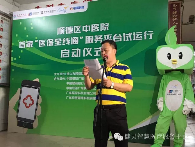 2016年6月28日,健灵智慧医疗携手顺德区中医院等合作方联合举办启动仪式,宣布顺德区内首家实现社保线上、线下支付功能的“医保全线通”服务平台正式上线试运营,医慧通APP平台、微信服务号平台同步登陆顺德区中医院。